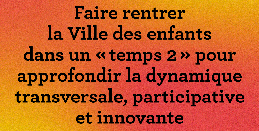 Marqueur politique fort de la mandature de l’exécutif depuis 2020, la "Ville des enfants” peut déjà s’appuyer, à Lyon, sur des fondations et des acquis solides. Le Projet éducatif lyonnais a été adopté en décembre 2021 à l’issue d’une large démarche de concertation, ainsi que les premiers projets ont été mis en œuvre en matière d’aménagement urbain. Les Conseils d’arrondissement des enfants sont des premières pierres posées pour faire de Lyon la Ville des enfants. L’année 2023 doit être celui de l’amplification des dynamiques transversales, partenariales, inter-institutionnelles, participatives et d’innovation qui font son identité.